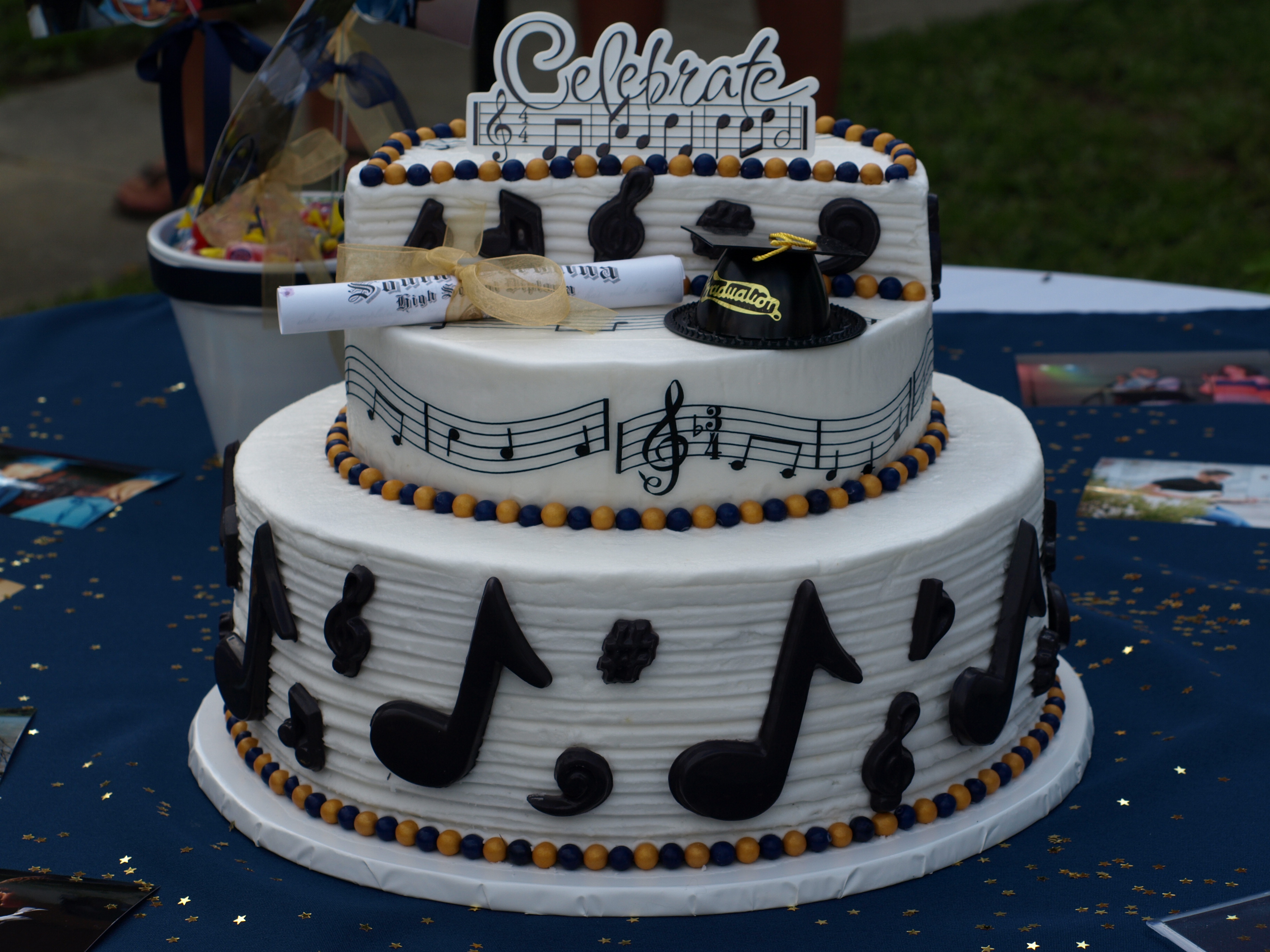 Okay, here it is… you requested that I explain how and what supplies were used to make my youngest son’s “Music” themed graduation cake so here it is! Cameron’s high school graduation cookout required a special cake for his special occasion. His love for music as well as his musical talent helped him procure several music scholarships and I wanted to touch on this “musical theme” while making his graduation cake! I describe below how I constructed his cake and what supplies I used.